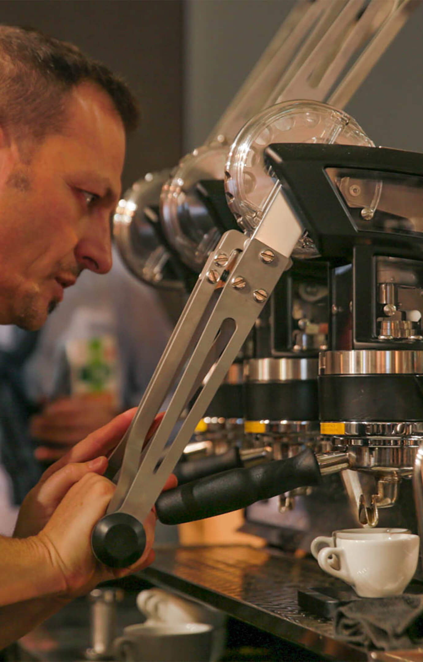 Leva rethinks the form of a lever espresso machine. No longer must safety be compromised in order for a café to use lever technology. The lever group gives line of sight to the captivating breakthrough mechanics. Leva features groundbreaking design, and technology in a mechanical, reliable, and user friendly machine. The innovative design reduces the force required to operate the machine by almost 50% compared to a traditional lever machine, while also introducing a safety clutch system. Leva machine makes it possible to adjust both the pre-infusion pressure and the maximum extraction pressure delivered by the lever piston, allowing to personalize coffee brewing and attain consistent shots. With over 2500 hours of testing, Leva sets a new standard for the reliability of a mechanical system.