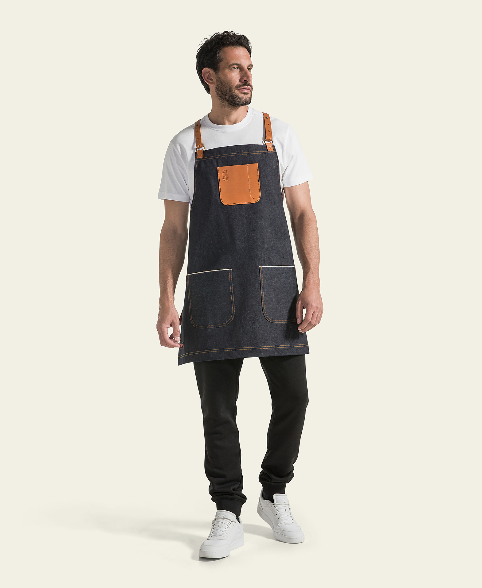 Barista Apron in denim and leather